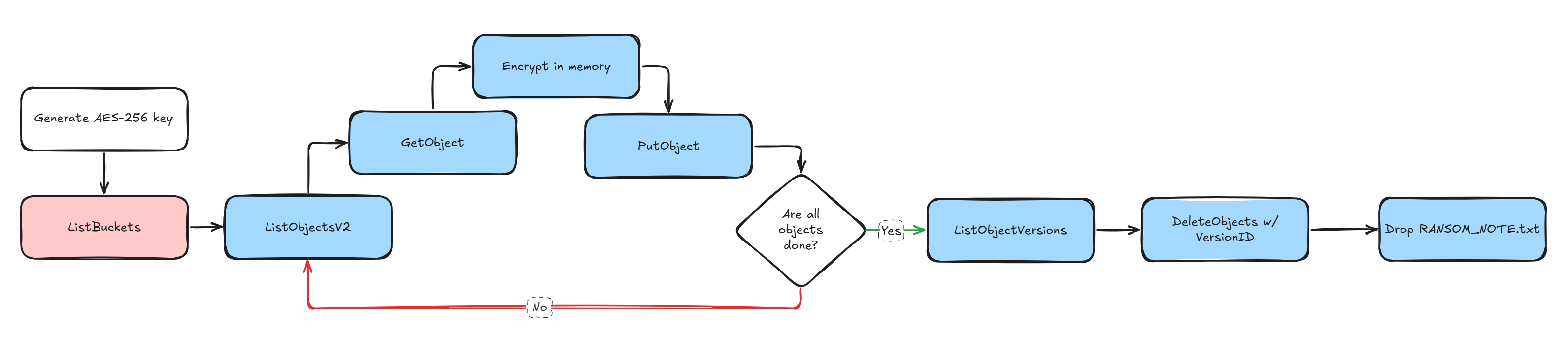 But from what I’ve seen, once you get past the initial access stuff, the research gets real thin. There’s not a whole lot of published work on what actually happens once an attacker is sitting on valid IAM keys to some SaaS company’s production AWS account. What does cloud-native ransomware actually look like? How do you hold someone’s S3 data hostage without downloading a single byte? What logs would even catch it and does anyone actually have those logs turned on? And no, I’m not counting the dozen blogposts that are essentially reworded versions of Rhino Security’s S3 ransomware research.