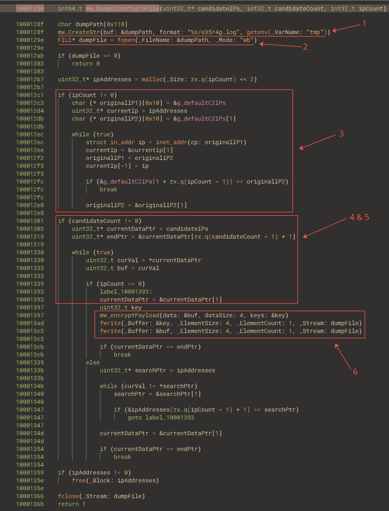 If after 3 attempts it still fails, it moves into trying to leverage it’s local config at C:\Users\<username>\AppData\Local\Temp\e35r4g.log by decrypting it with the key located at the first 4 bytes of the file.