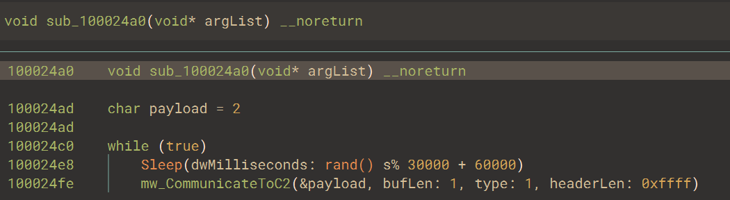 From there, we observe that the sample sleeps for a randomized duration and initiates communication with the C2 using a sessionId of 0xFFFF (we’ll revisit this detail later).